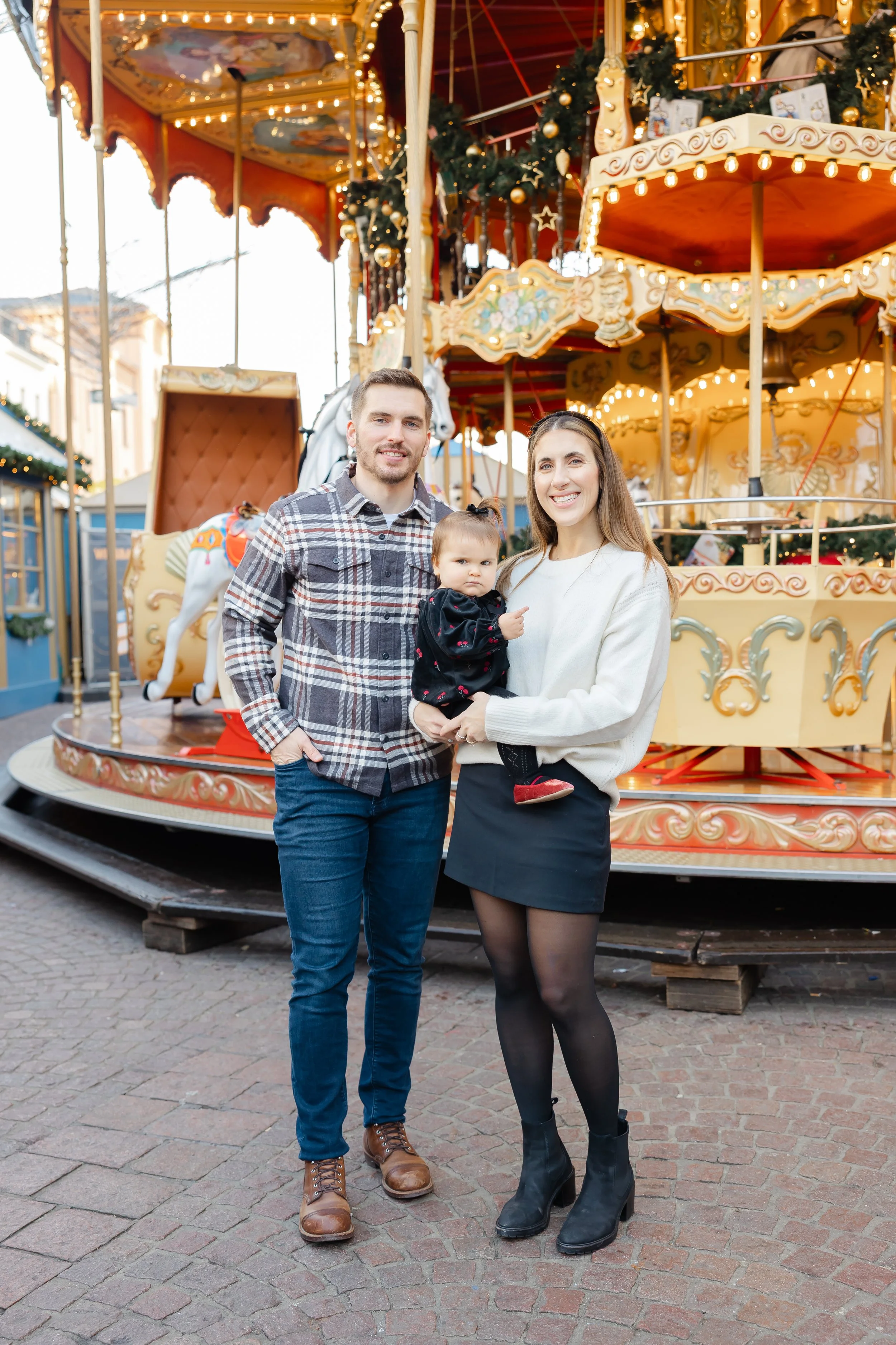 Wiesbaden’s Christmas market is one of my favorites for holiday sessions. The charming stalls, glowing carousel, and historic setting give photos a timeless holiday feel without needing much extra styling.